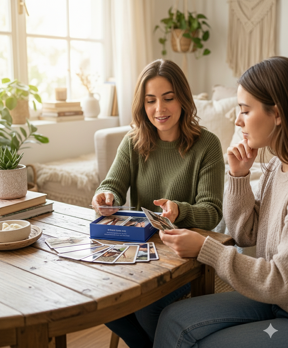 למה דווקא קלפים? לאורך הדרך גיליתי שמילים הן לפעמים צפופות מדי. הן נתקעות בגרון, הן מתחבאות מאחורי פחדים, או שהן פשוט לא מספיקות כדי לתאר את מה שקורה לנו בפנים.